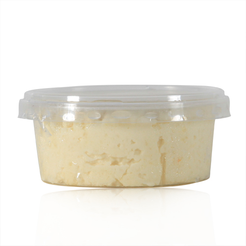 Plenty of garlic with potato, it is mainly served with cod and fried courgette. The garlic sauce is also one of our strongest export products.