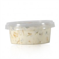 Chopped fresh onion, fresh parsley, cucumber pickles and mayonnaise (or without mayonnaise) are the ingredients. The fresh onion mixed with parsley gives a special touch of the taste.